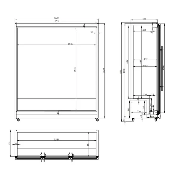 Binnenafmetingen: B 1584 x D 487 x H 1459 mm