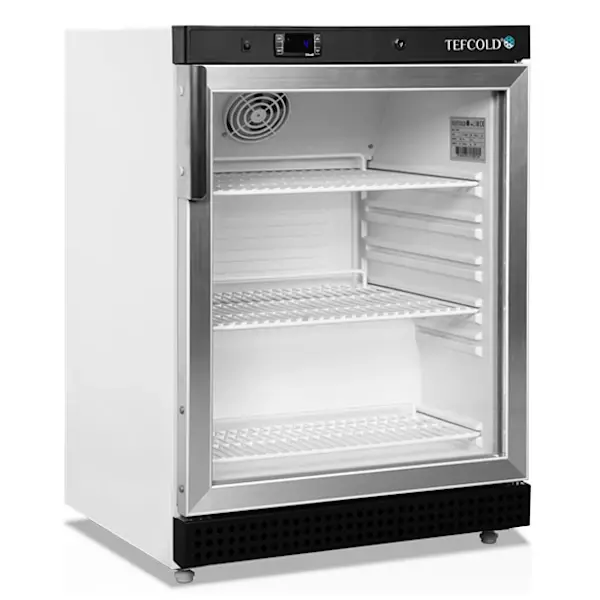 De praktische UR200G tafelmodel koelkast van Tefcold is ideaal voor het creëren van extra gekoelde opslag onder een bar, werkblad of ergens anders waar de beschikbare hoogte beperkt is. De verstelbare roosters zorgen daarbij dat de inhoud naar wens is in te delen en de omkeerbare scharnierkant van de deur biedt extra flexibiliteit.
