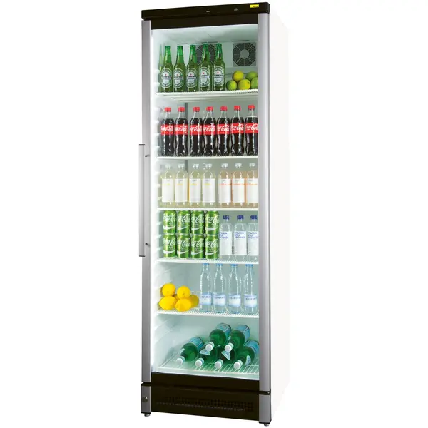 De glazen deur met aluminium greeplijst biedt helder zicht op de volledige inhoud, ideaal voor verkoopdoeleinden. De afzonderlijk schakelbare LED-binnenverlichting zet dranken extra in de spotlight. De deur is voorzien van een slot en heeft optioneel een verwisselbare scharnierkant.