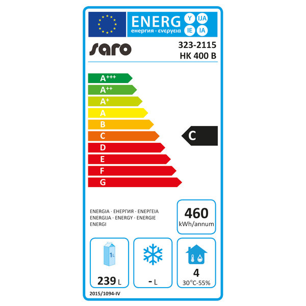 Deze zwarte koelkast van Saro heeft een bruto inhoud van 400 liter en wordt geleverd met 4 verstelbare roosters met een formaat van 505x415 mm + 1x 505x255 mm. Het apparaat is voorzien van statische koeling met ventilator met een temperatuurbereik van -2°C/+8°C en automatische ontdooiing.