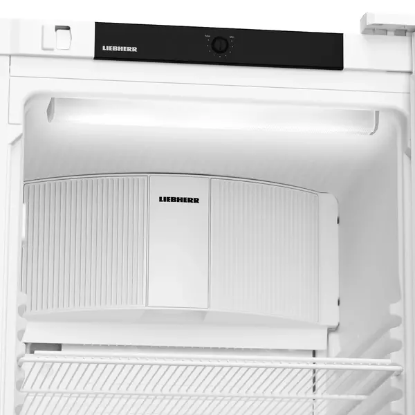 Deze professionele koelkast uit de PERFORMANCE-lijn van Liebherr is uitgevoerd in robuuste stalen behuizing met hoogwaardige witte coating en interieur van stevig kunststof.