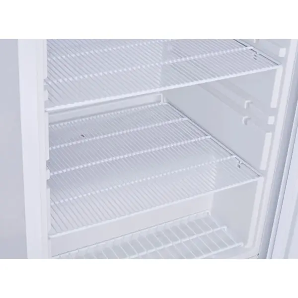 De massieve deur is voorzien van een slot, continue verzonken greep, rechts geplaatste verwisselbare deurstop en magnetische afdichting, waardoor koude lucht efficiënt binnen blijft. Het diepgetrokken interieur van wit polystyreen met geïntegreerde steunribben is hygiënisch, onderhoudsvriendelijk en eenvoudig schoon te maken.