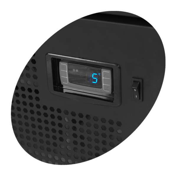 De koelkast is voorzien van krachtige geforceerde koeling voor een egale koudeverdeling en snel temperatuurherstel na openen. Het temperatuurbereik van +2°C/+10°C kan daarbij eenvoudig digitaal worden ingesteld met helder LED-display.