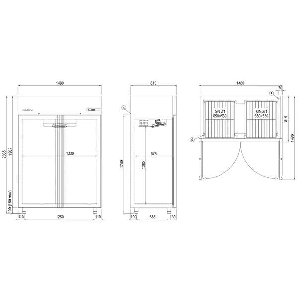 Koelkast | MASTER | 1356L (2/1 GN) | RVS | -2°C/+8°C | Geforceerd | WiFi + App | 1480x815x2085(h)mm
