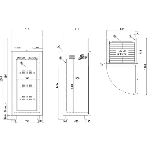 Koelkast | MASTER | 573L (2/1 GN) | RVS | 0°C/+10°C | Geforceerd | WiFi + App | 810x715x2085(h)mm