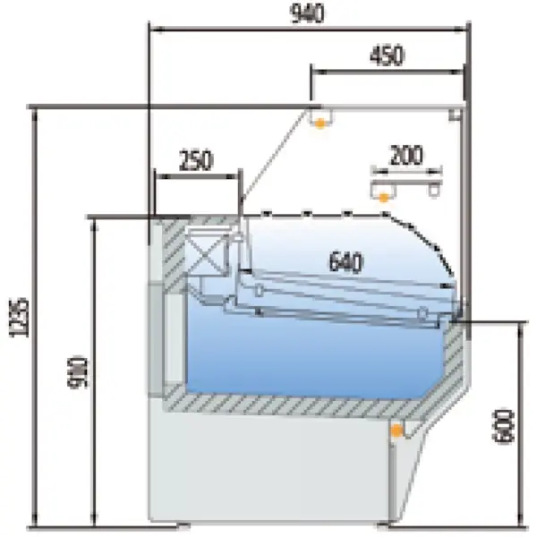 Let op, de productafbeeldingen zijn ter illustratie en kunnen van een toonbank in ander formaat of uitvoering zijn. De koeltoonbank wordt standaard geleverd in grijs (RAL7024), en kan geleverd worden in uiteenlopende kleuren.