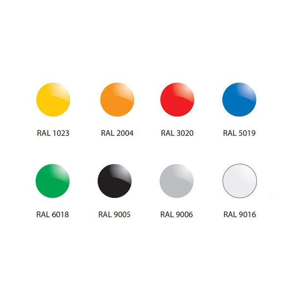 RAL-kleur frontstrook opgeven bij bestelling (RAL 1023, RAL 2004, RAL 3020, RAL 5019, RAL 6018, RAL 9005, RAL 9006 of RAL 9016)
