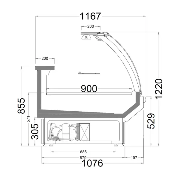 Koeltoonbank | MEROPS | -1°C/+5°C | Geforceerd | Div. Kleuren/Opties | Kantelruit | Koppelbaar | Div. Breedten | Diepte 1167mm | Hoogte 1220mm