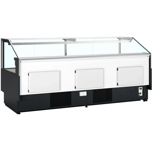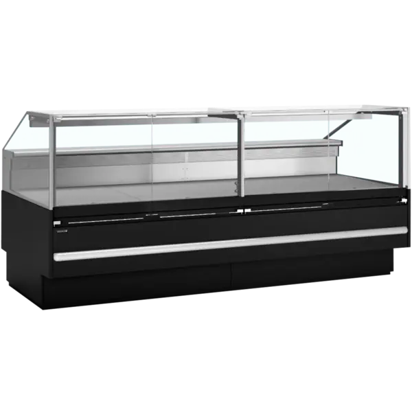De koeltoonbank is gemakkelijk schoon te maken dankzij de binnenzijde van hoogwaardig RVS en de scharnierende glaspanelen aan de voorkant die naar voren openen, voor betere toegang tot de etaleerruimte. Aan de voorkant bevindt zich daarnaast een speciale stootrand voor extra bescherming.