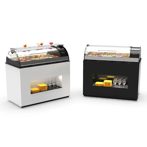 De vitrine is voorzien van een extra compacte koelunit met statische koeling en een temperatuurbereik van +2°C/+6°C. De digitale bediening met helder display, geplaatst in de binnenruimte, maakt instellen heel eenvoudig en het apparaat is verder voorzien van automatische ontdooiing en maakt gebruik van milieuvriendelijk koelmiddel.
