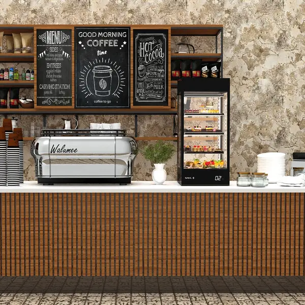 De koelunit werkt op basis van krachtige geforceerde koeling, voor optimale verdeling van de koude lucht en snel temperatuurherstel na openen, met een temperatuurbereik van +2°C/+6°C. De touchscreenbediening met groot helder display, dat naadloos in de basis is verwerkt, maakt instellen heel eenvoudig. Verder is de vitrine voorzien van automatische ontdooiing en maakt het apparaat gebruik van milieuvriendelijk koelmiddel.