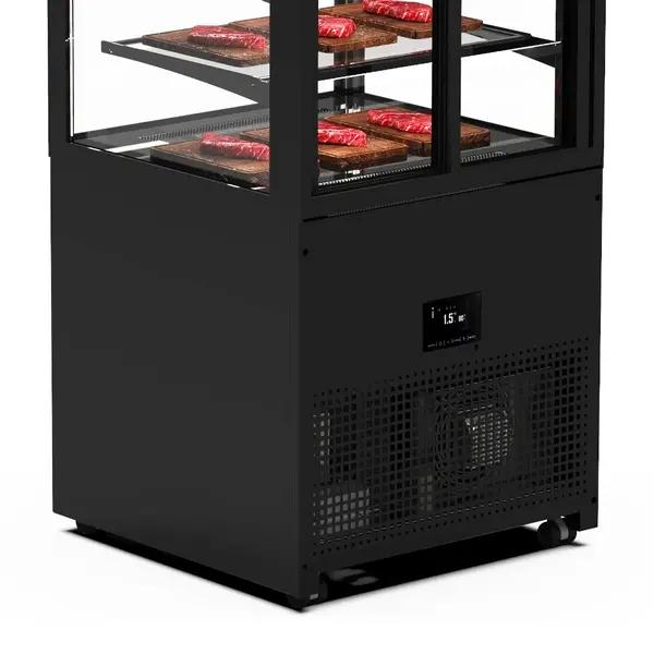 Koelvitrine | INTEGRA | Zwart | +2°C/+6°C | Geforceerd | 4 Niveaus | Vochtigheid Instelbaar | Wielen (Geremd) | 600x600x1400(h)mm