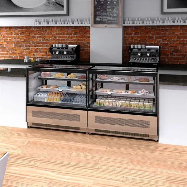 De inhoud van de koelvitrine is eenvoudig toegankelijk via de schuifdeuren aan de achterkant en de rechte bovenkant vormt een praktisch plateau voor makkelijker bedienen van klanten of aanvullende ruimte voor het plaatsen van extra producten.