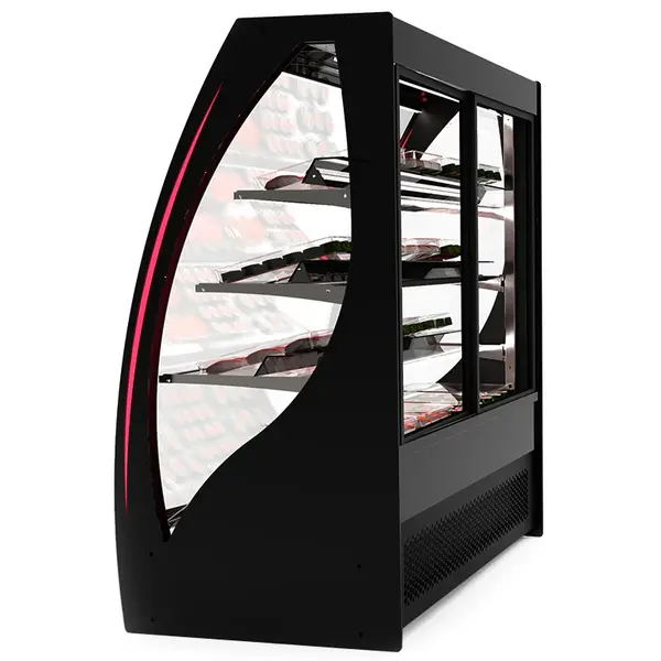 De unieke plaatsing van de koelunit zorgt voor maximale etaleerruimte, terwijl de interne techniek uit het zicht blijft. Elk interne plateau is voorzien van een dubbele lijn LED-verlichting over de volledige breedte voor perfecte belichting van de producten zonder ongewenste schaduwen. De plateaus zijn daarnaast eenvoudig verstelbaar en ook de bodem is geschikt als dubbel opstelvlak, met 2 hoogteniveaus, zodat er flexibel en optimaal van de binnenruimte gebruik kan worden gemaakt.