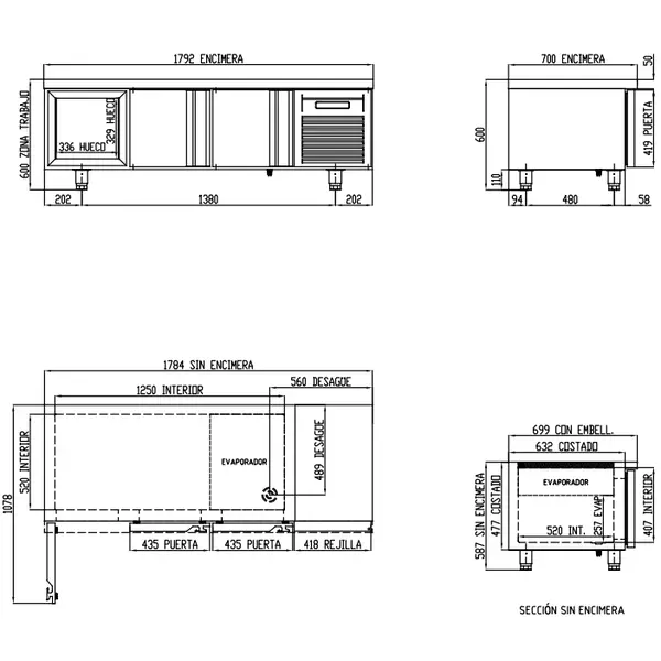 De binnen- en buitenzijde zijn uitgevoerd in AISI-304 RVS, met afgeronde hoeken voor optimale hygiëne. De deuren zijn voorzien van een zelfsluitend systeem, omkeerbare scharnieren en magnetische sluiting. De verstelbare poten en in hoogte aanpasbare roosters zorgen voor flexibiliteit in gebruik.