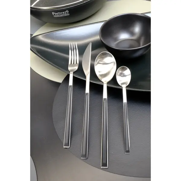De PRO BLACK-reeks is vervaardigd uit hoogwaardig RVS met een gesatineerde afwerking en een dikte van 2,5 mm, gecombineerd met een matzwarte handgreep van duurzaam ABS-kunststof. Ontworpen en geproduceerd door Pintinox, een toonaangevende Italiaanse fabrikant die bekendstaat om zijn innovatie en hoogwaardige bestekcollecties. Het strakke, moderne design maakt van PRO BLACK een stijlvolle aanvulling op elke gedekte tafel.