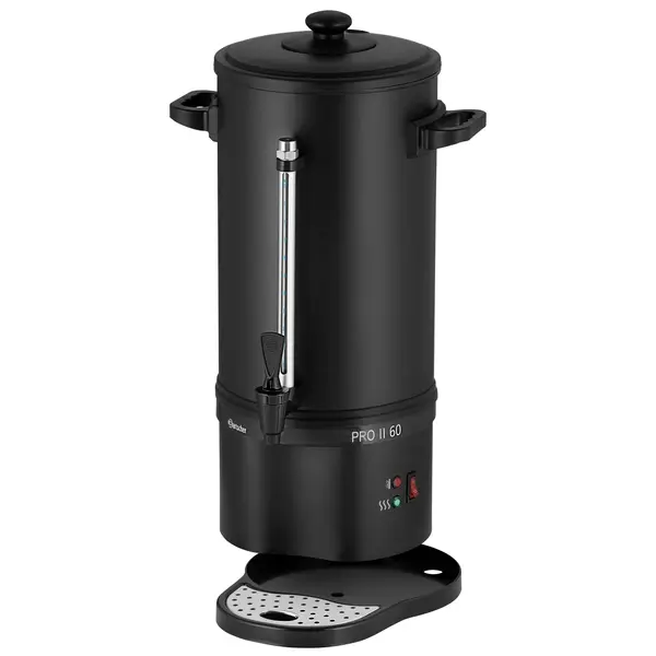 De Bartscher PRO II koffiepercolator is een praktische machine in een strak, matzwart design die perfect past in diverse ondernemingen, vergaderruimtes en kantoren. Met een bruto inhoud van 9 liter en een capaciteit van circa 60 tot 72 kopjes zet het apparaat in ongeveer 50 minuten een volle hoeveelheid verse koffie. En dankzij de minimale zethoeveelheid van 4,5 liter is het apparaat ook geschikt voor kleinere volumes.
