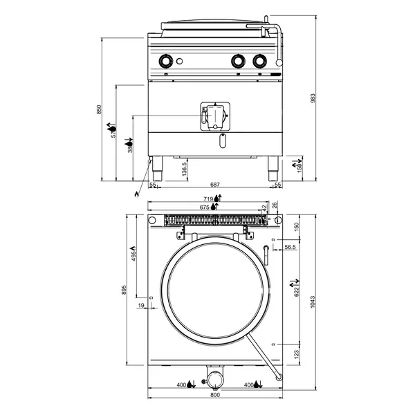 Kookketel | DOMINA PRO 900 | Gas | 150L | Directe Verhitting | 21kW | Piëzo Ontsteking | Vulkraan (Warm/Koud) + Aftapkraan | 800x900x850(h)mm