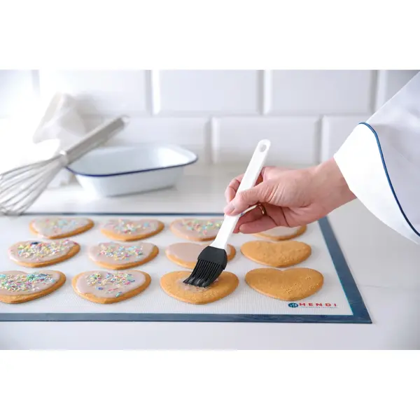De HENDI kwast heeft een handvat van duurzaam polypropyleen en zachte siliconen haren, waardoor hij perfect is voor het aanbrengen van glazuur, boter of marinades. Dankzij de hittebestendigheid ligt de kwast bovendien comfortabel in de hand.