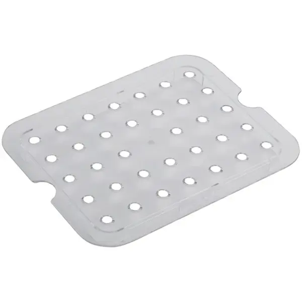 Deze transparante lekroosters zorgen ervoor dat een teveel aan vocht weg kan lopen en voorkomen zo dat het bewaarde of gepresenteerde voedsel zacht of slecht wordt. De inlegroosters zijn gemaakt van polycarbonaat en daardoor zeer stevig, lichtgewicht, duurzaam en eenvoudig te reinigen. Ideaal voor gebruik in een professionele keuken. Voorzien van uitsparingen zodat ze gemakkelijk uitneembaar zijn. Uitwisselbaar met de 1/2 GN producten van Gastro M.