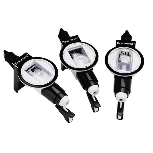 Professionele maatschenker, modern design met hendel en lens op de voorkant. Dankzij de hendel is hij met één hand te bedienen; door de hendel naar achter te duwen loopt de maatschenker leeg in het glas.