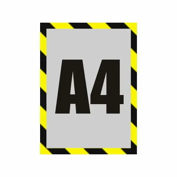 Het verwisselen van de inhoud gaat snel en moeiteloos: de beschermfolie kan eenvoudig worden opgetild, waarna de magnetische strips de lijst vanzelf weer sluiten. Deze wissellijsten met afwerking in diagonale zwarte en gele strepen, met name bestemd voor veiligheids- en waarschuwingstoepassingen, zijn bovendien verkrijgbaar in A4- en A3-formaat!