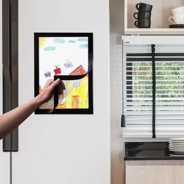 De transparante folie met herpositioneerbare magnetische hechting is op gladde oppervlakken zoals glas en metaal en kan eenvoudig worden verplaatst zonder hechting te verliezen. De wissellijsten zijn zowel in portret- als landschapsoriëntatie te gebruiken, waardoor je flexibel bent in de presentatie van je documenten.