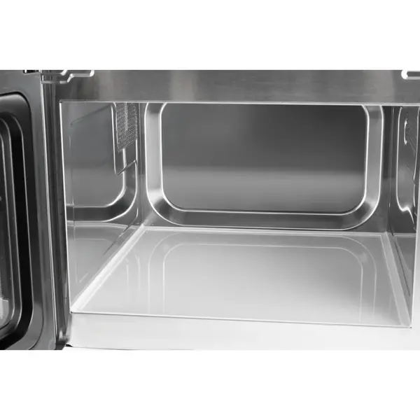 De deur is voorzien van gehard glas in plaats van kunststof en dus zeer robuust en geeft goed zicht op de inhoud. Vanwege de grote inhoud is deze magnetron ideaal voor het bereiden van grote of dubbele hoeveelheden voedsel en via het touchpad kunnen diverse programma's worden gebruikt om gerechten perfect te bereiden. Daarbij beschikt het apparaat over ruimte voor tot 100 (persoonlijk instelbare) programma's en is het touchbedieningspaneel uitgevoerd met Braille voor extra gebruikstoegankelijkheid.