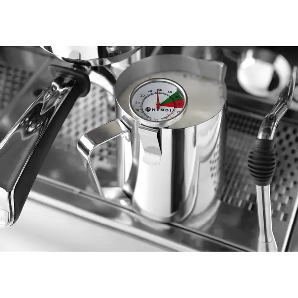 Deze degelijke analoge melkschuimthermometer van HENDI heeft een compact formaat en wordt geleverd met een beschermhuls voor de sonde, zodat de thermometer eenvoudig in je broekzak past.