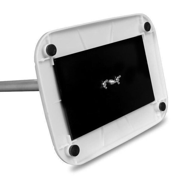 De constructie is gemaakt van geanodiseerd aluminium en de basis is verzwaard met een metalen plaat, voor stevigere plaatsing, met een kunststof kap voor eenvoudig reinigen!