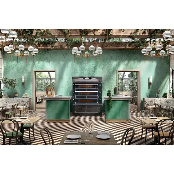De bakruimte is volledig bekleed met vuurvast materiaal en voorzien van Hype-verwarmingselementen in de vloer en het plafond. De boven- en onderwarmte regel je onafhankelijk van elkaar, zodat je voor elk product de perfecte bakresultaten behaalt. Met een maximale temperatuur van 450°C en ultrasnelle opwarmtijden is de oven geschikt voor pizza’s, brood en patisserie. De uitstekende isolatie zorgt ervoor dat de buitenkant slechts rond de 30°C wordt, waardoor je veilig en comfortabel kunt werken.