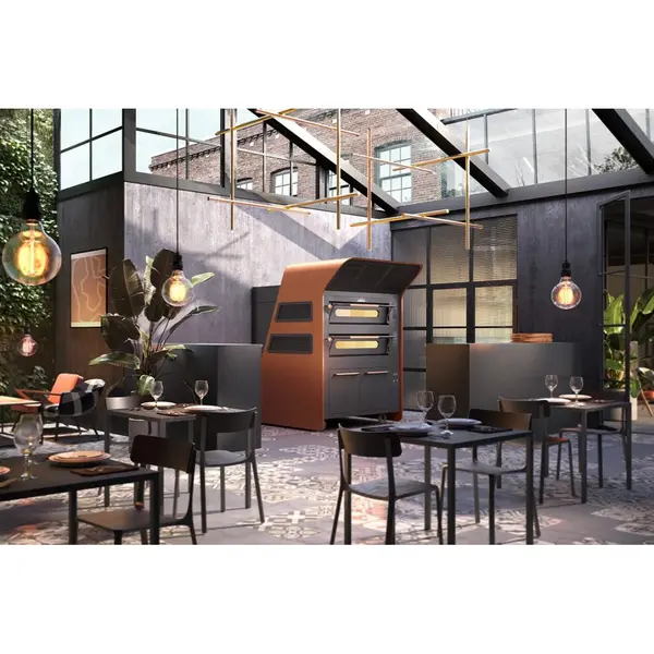 De bakkamer is bekleed met vuurvast materiaal en uitgerust met Hype-verwarmingselementen in zowel de vloer als het plafond. Zo regel je boven- en onderwarmte volledig onafhankelijk, voor perfecte bakresultaten bij elk product. Met een maximale temperatuur van 450°C, korte opwarmtijden en uitstekende isolatie (buitenzijde rond de 30°C) is de oven ideaal voor pizza’s, brood en patisserie – veilig en productief.
