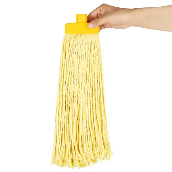 De gele aansluiting maakt de mopkop direct herkenbaar en geschikt voor gebruik binnen een kleurgecodeerd schoonmaaksysteem. Dit helpt kruisbesmetting te voorkomen en draagt bij aan een hygiënische werkomgeving door het scheiden van schoonmaakmaterialen per ruimte of zone.