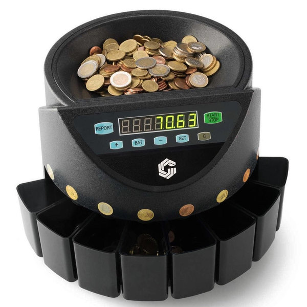 Met een ruime invoermogelijkheid, optimale snelheid en batch- en optelfunctie telt de munttelmachine CashMeister SERIE 270 euromunten in een handomdraai. Vooraf munten sorteren is niet nodig, dat doet de munttelmachine automatisch. De munten worden aan de bovenkant ingevoerd en de machine sorteert en telt de munten automatisch, voordat deze er aan de onderkant weer uit komen.