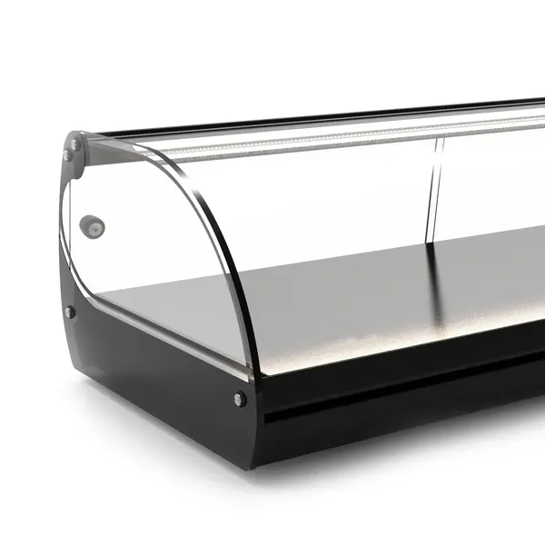 Voor eenvoudige toegang tot de displayruimte is de bedieningskant voorzien van praktische schuifdeuren en het vlakke gedeelte bovenop is stevig genoeg om aanvullende producten op te etaleren. Verder maken de afgeronde hoeken en naar voren kantelbare voorruit schoonmaken extra eenvoudig en voor optimaal veilig en comfortabel gebruik is de vitrine voorzien van een glasbeschermingsprofiel en stelvoeten, voor stabielere plaatsing.