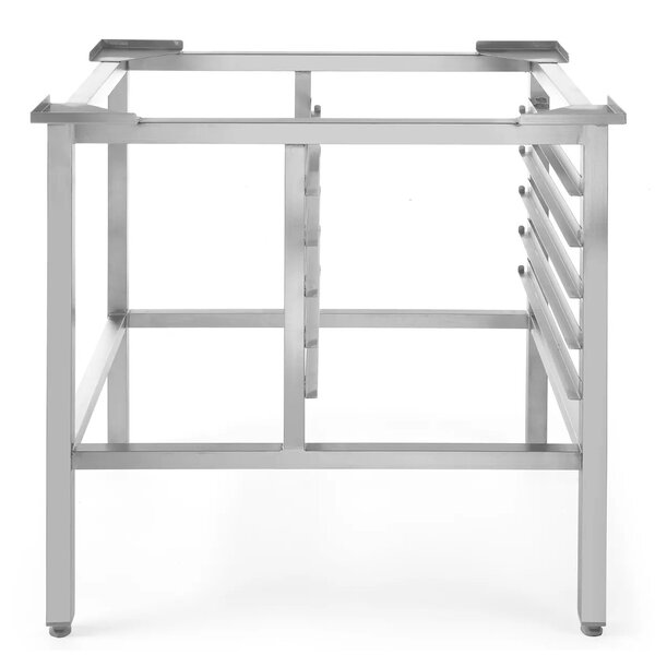 Het onderstel beschikt over een geleiderframe voor 2/3 GN-formaat met 5 niveaus, waar ovenroosters, bakplaten, bakblikken e.d. voor het apparaat kunnen worden opgeslagen.