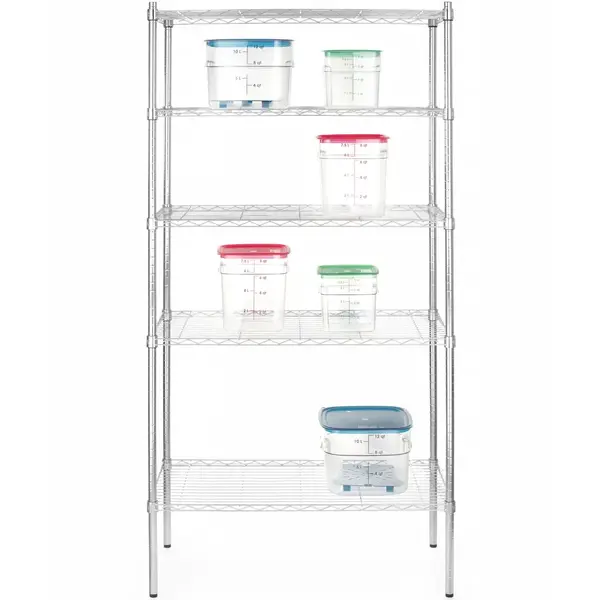 Opbergrek | Staal | Verchroomd | 5 Schappen (Verstelbaar) | Verstelbare Voeten | 910x455x1830(h)mm
