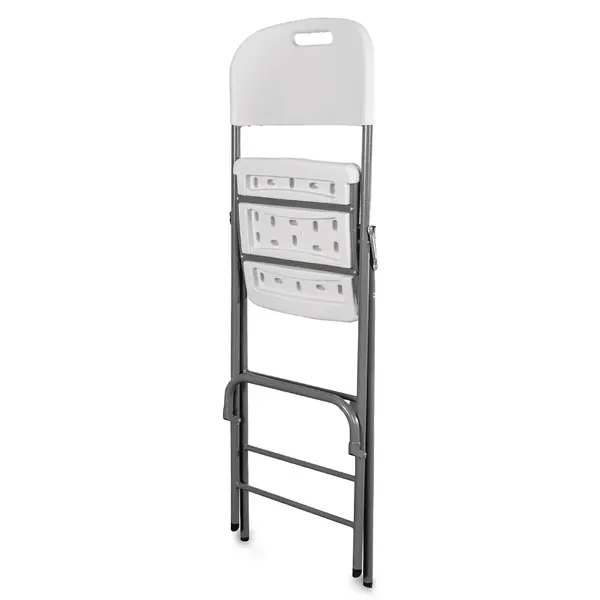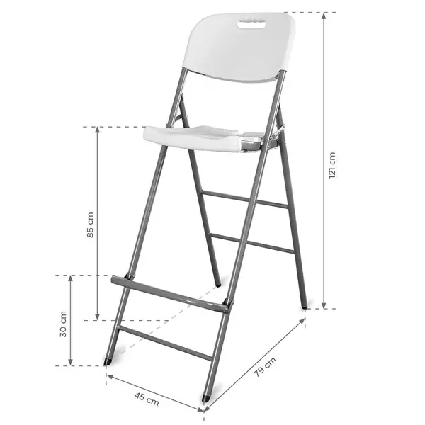 Deze opklapbare barstoel uit de EVENT-serie van Luxus heeft een zeer lichte, maar toch stabiele en duurzame constructie. De zitting en rugleuning zijn gemaakt van hoogwaardig wit kunststof en het frame is uitgevoerd in stevig staal met grijze poedercoating. Door dit stevige frame heeft de stoel een draagkracht tot maar liefst 200 kg en dankzij de inklapfunctie kan de stoel eenvoudig (gestapeld) worden vervoerd en opgeborgen.