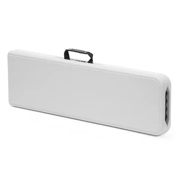 Deze rechthoekige bank uit de CATERING-serie kan eenvoudig worden opgeklapt tot een handig te vervoeren koffer met handgreep. Het zitvlak is uitgevoerd in robuust wit HDPE (hoge dichtheid polyethyleen) en het frame is gemaakt van stevig metaal met grijze poedercoating. Beide materialen zijn vuilwerend en heel eenvoudig te reinigen.