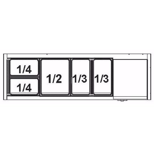 Kan met behulp van eventuele extra tussen bruggen geschikt gemaakt worden voor GN1/2, 1/4, 1/6, 1/9 bakjes