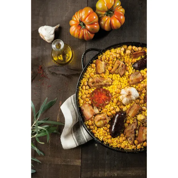 Deze professionele paëllapan van ECW is gemaakt van geëmailleerd staal en ideaal voor het bereiden van authentieke paella. Duurzaam, onderhoudsvriendelijk en geschikt voor intensief gebruik in de horeca.