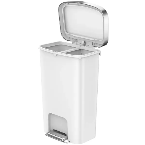 Pedaalemmer | HANA | Kunststof/RVS | Wit | 50L | Klapdeksel | Afvalscheiding | Wielen | 433x312x641(h)mm