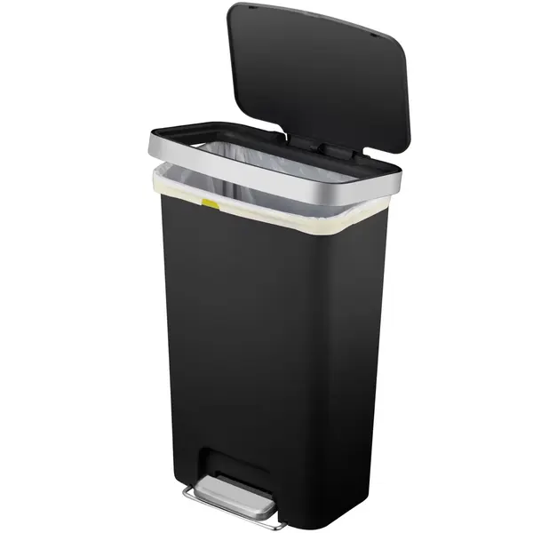 Je gebruikt deze pedaalemmer dankzij de kunststof uitvoering met een iets afgeronde RVS rand die de afvalzak op zijn plaats houdt en uit het zicht werkt. De brede, overlappende rand maakt het mogelijk de emmer volledig open te zetten voor eenvoudig reinigen en het wisselen van zakken. De ingebouwde wielen aan de achterzijde zorgen ervoor dat je de pedaalemmer gemakkelijk verplaatst.