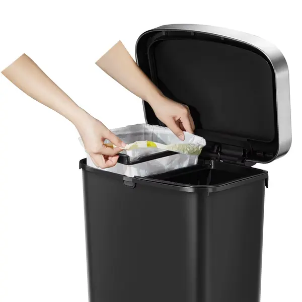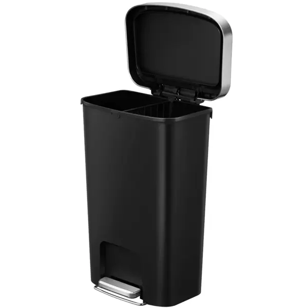 Pedaalemmer | HANA | Kunststof/RVS | Zwart | 50L | Klapdeksel | Afvalscheiding | Wielen | 433x312x641(h)mm