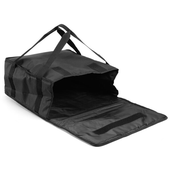 De pizzabezorgtas heeft een eenvoudig te verstellen klittenband sluiting en het grote handvat maakt het dragen comfortabel. Daarnaast is de tas voorzien van een transparant vak aan de bovenkant voor bonnen.