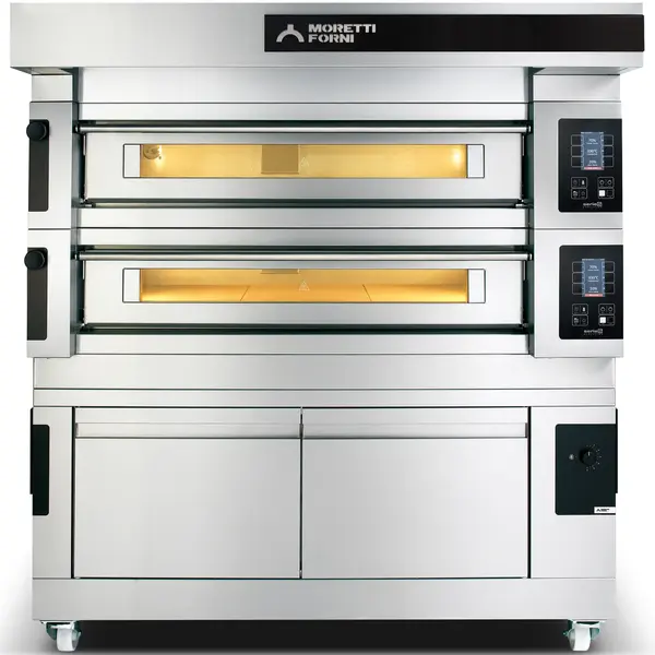 De serieS S120E pizzaoven van Moretti Forni is ontworpen voor het bakken van pizza’s en andere deegproducten in drukke horeca- en commerciële keukens. Dankzij het modulaire systeem is de oven stapelbaar tot maximaal 3 bakkamers, waardoor de capaciteit eenvoudig kan worden uitgebreid. De oven beschikt over 1 ruime bakkamer met een vuurvaste, gezandstraalde bodem en verwarmingselementen onder de vloer, wat zorgt voor een gelijkmatige warmteverdeling en consistente bakresultaten.