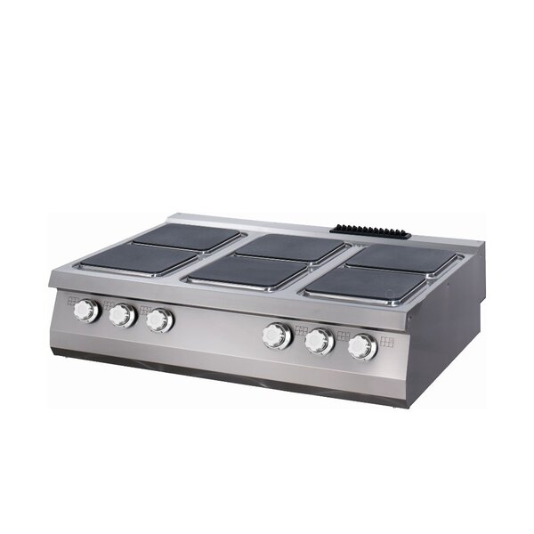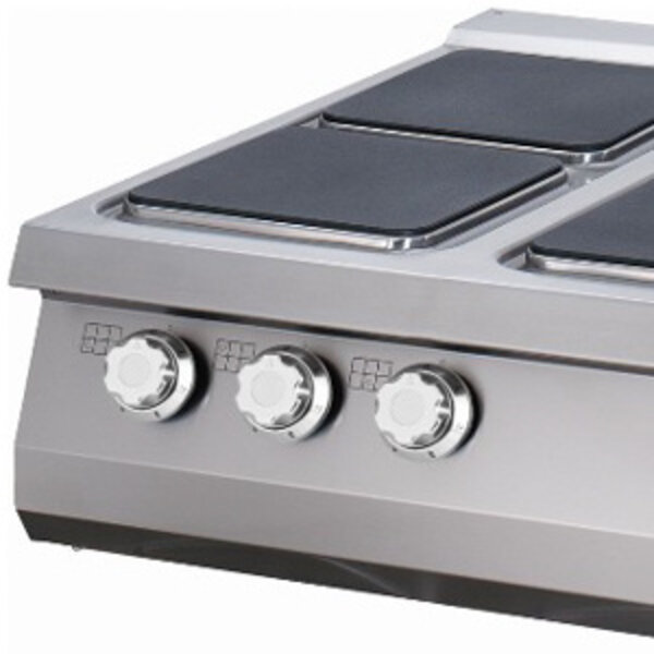 Deze strakke elektrische kookplaat is ontworpen voor intensief gebruik in drukke horecakeukens. Met zes ruime kookplaten van zwaar gietijzer biedt hij voldoende ruimte voor grote pannen. De kookplaat is voorzien van een robuuste rvs behuizing met afgeronde hoeken, wat het schoonmaken vergemakkelijkt en hygiënisch maakt. Elke kookplaat is individueel instelbaar met zes temperatuurstanden tussen 90 en 450 graden Celsius. De grote ronde knoppen zorgen voor een praktisch en prettig gebruik. Dit apparaat is geschikt om te plaatsen in een bakwand of baklijn en kan gecombineerd worden met een bijpassend rvs onderstel.