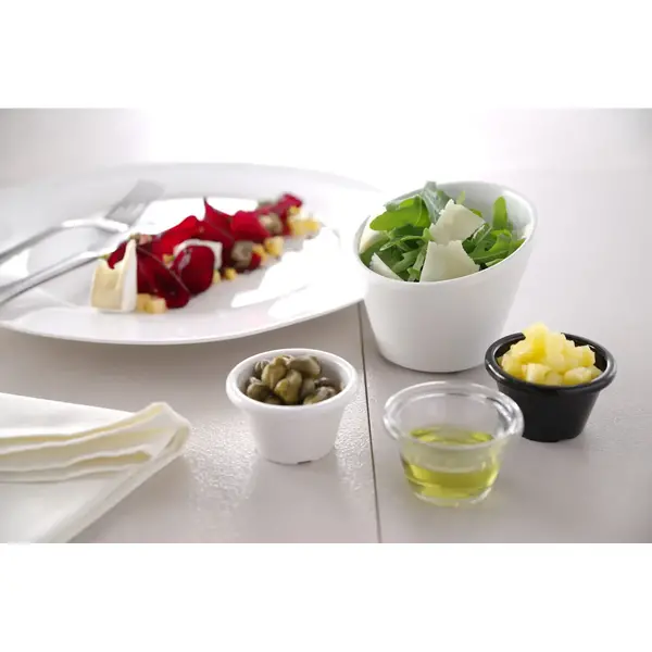 Deze ramekins van HENDI zijn gemaakt van PET (Polyethyleentereftalaat), een duurzaam en lichtgewicht materiaal. Ze zijn ideaal voor het serveren van sauzen, dips of kleine desserts en bieden met het geribbelde ontwerp een stijlvolle presentatie. Bestand tegen dagelijks gebruik in een drukke horecaomgeving.