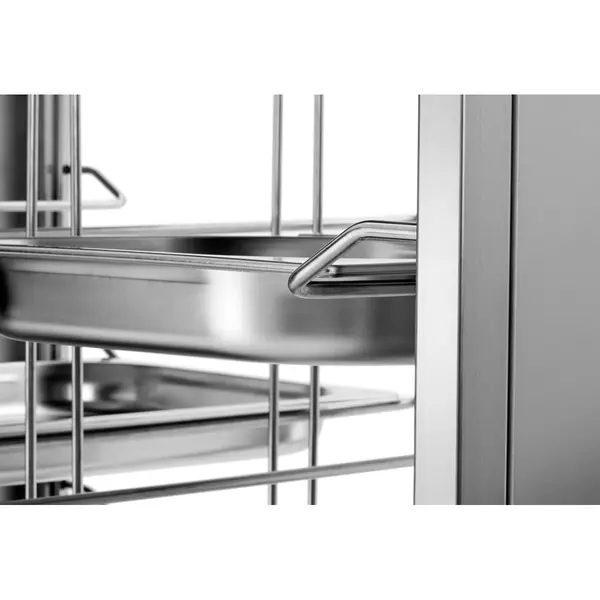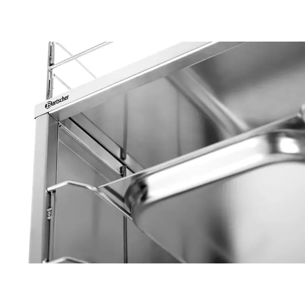 Deze omkaste regaalwagen van Bartscher met 2x 10 etages creëert royale ruimte in 1/1 GN-formaat en beschikt daarnaast ook over een praktisch bovenblad met railing rondom. Verlaagde beugels zorgen daarbij voor een stabiele grip - zonder weg te glijden tijdens transport.