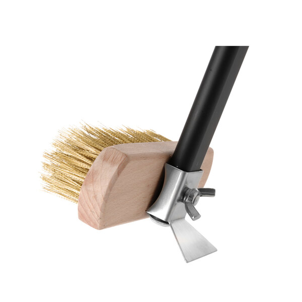 Deze reinigingsborstel van HENDI is door de lange steel speciaal geschikt voor het schoonhouden van pizzaovens. De houten borstel is uitgevoerd met koperen borstelharen aan de ene kant en stalen krabber aan de andere kant en voorzien van lange aluminium steel.